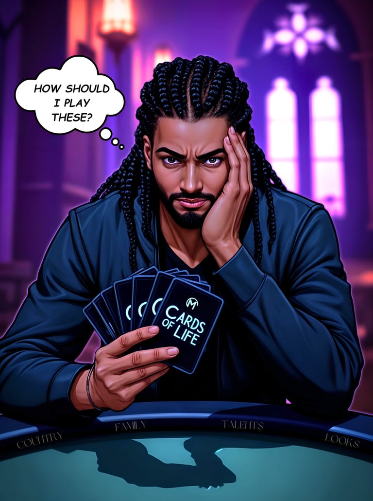 We are all born into different circumstances with different strengths, attributes and skills, let’s call them ‘Cards of Life’. Just like being at a dealers table, the cards we are handed are beyond our control.